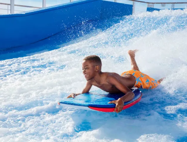 Surf simulator – “FlowRider”: If you prefer water-action, the FlowRider surf simulator gives you the chance to ride 30 000 gallons of water and test your balance and bravery.